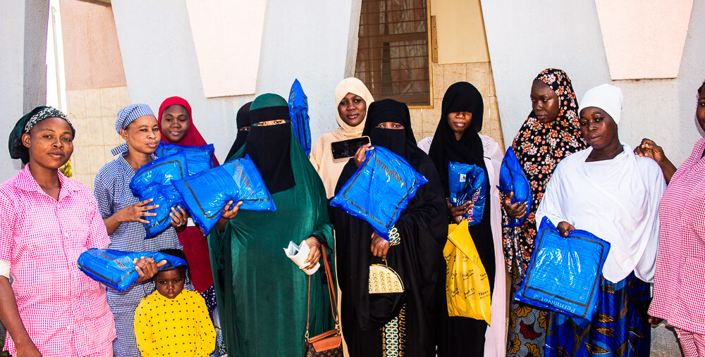 The first group of women to receive the mosquito nets
