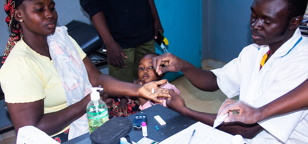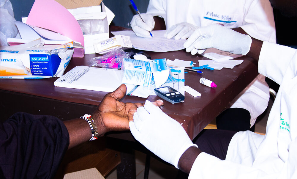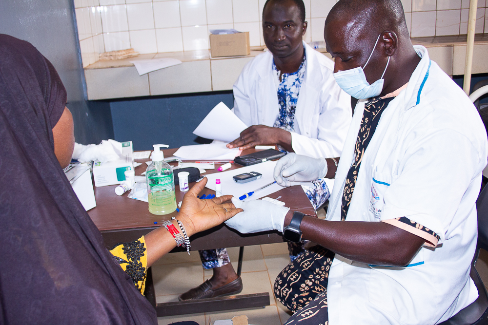 The nurse taking samples for the diabetes and hepatitis B tests