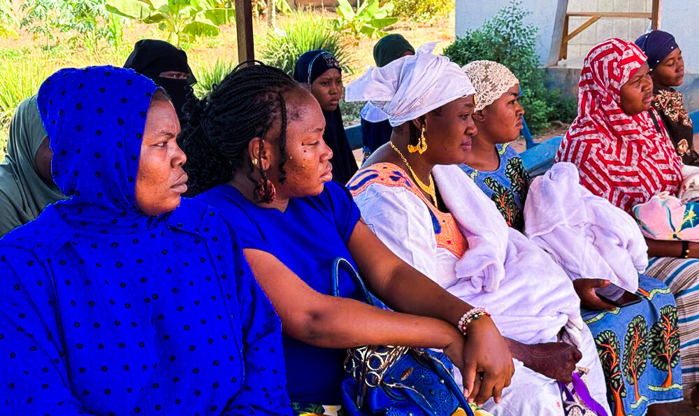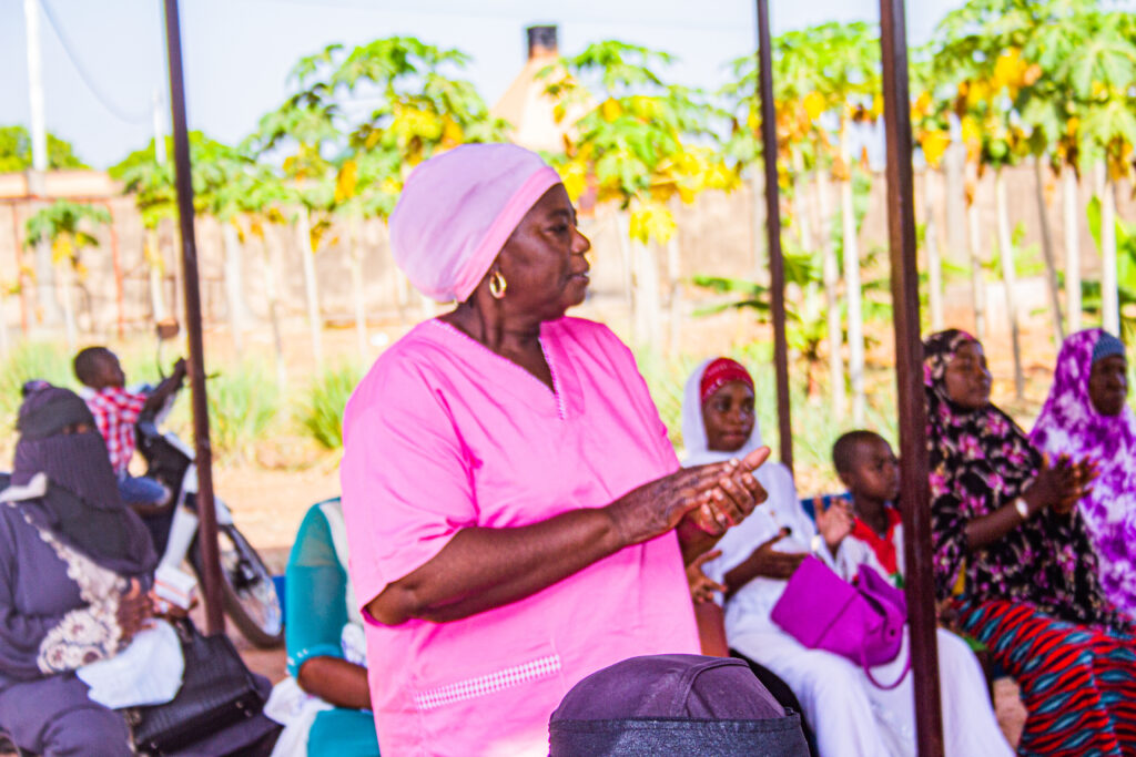 Women listening to the awareness session on mosquito nets and how to look after them
